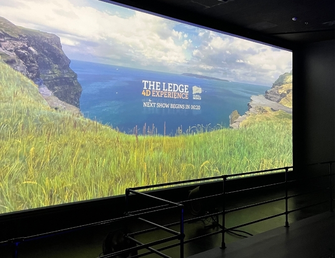 Located within the Cliffs of Moher Experience Visitor Centre, the Ledge 4D Experience takes visitors on an interactive 3-minute tour of the cliffs and combines stunning visuals of the world-famous cliffs on a calm summer’s day, both above the sea and underwater, with the environmental effects of west of Ireland wind and spray of Moher mist.