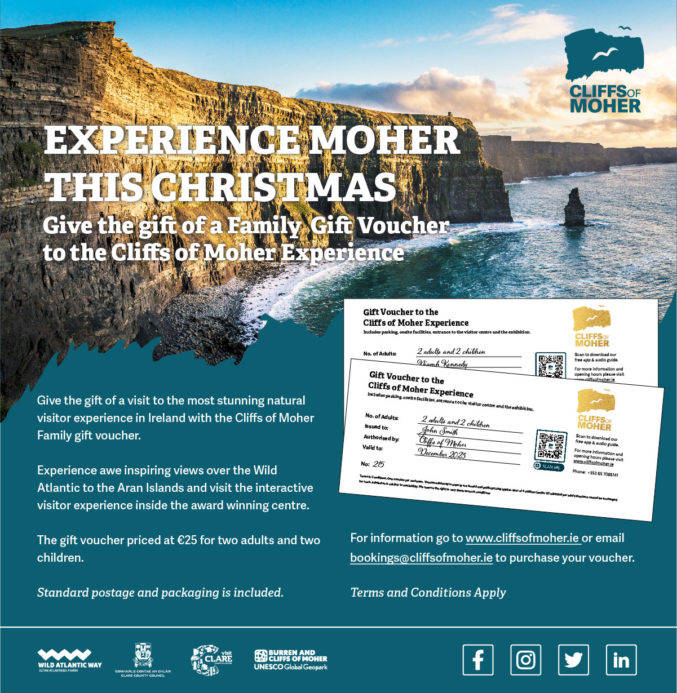 Share some Moher magic this Christmas, by gifting loved ones a Cliff of Moher Experience gift voucher.
