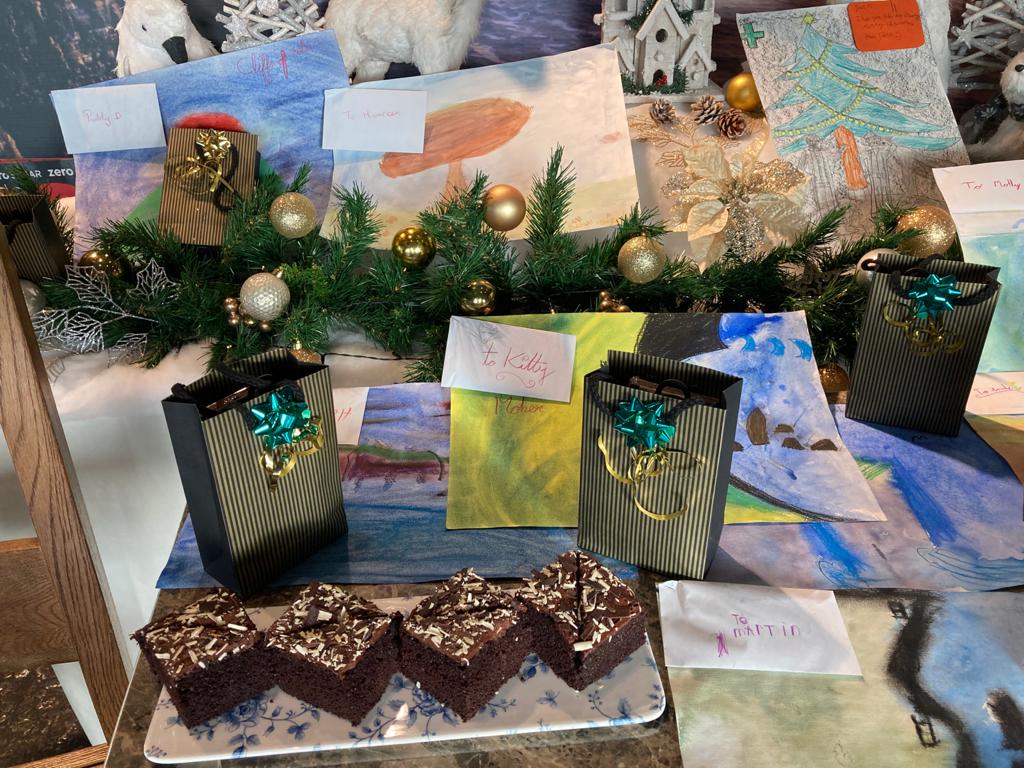 The Cliffs of Moher collected the letters, recordings, and paintings and paired a gift for each of the residents.  Shannon Heritage gift shop and Brambles both agreed to be part of this Christmas initiative and sponsored the gifts and provided the food.   As a thank you for all the hard work that they put in on the frontline, staff at each of the centres were treated to a variety of home-cooked goodies.