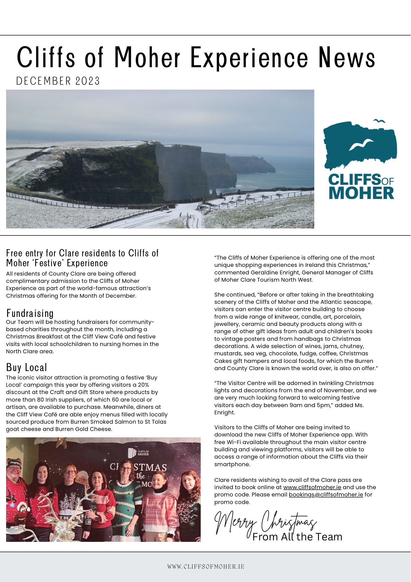 Free entry for Clare residents to Cliffs of Moher ‘Festive’ Experience for the month of December 2023