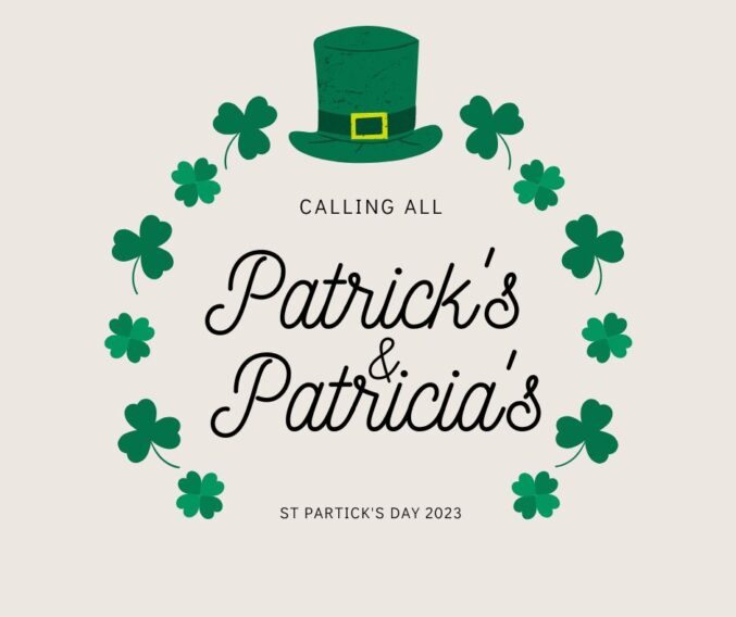 Examples of this include, Padráig, Pádraic, Pat, Patricia, Patrice, Fitzpatricks and McPatrick! All you have to do is show a valid ID on entry to confirm your first name or surname derivative of ‘Patrick’!