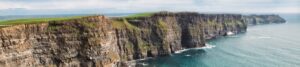One of Ireland’s favourite visitor experiences, the Cliffs of Moher tower over the rugged west Clare coast. Walk the safe, paved pathways and view the famous Cliffs on Europe’s western frontier, enjoying spectacular views over the Atlantic Ocean and the Aran Islands.