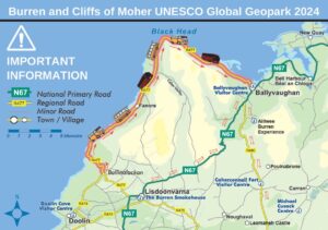 Miriam Kennedy, Head of Wild Atlantic Way (Fáilte Ireland) commented, “Fáilte Ireland is pleased to support this trial aimed at improving traffic flow and enhancing the visitor experience in North Clare. The clockwise route trial is a significant step towards reducing congestion on the R477 coastal road, ensuring that visitors can enjoy the stunning landscapes in the area with greater ease. This initiative not only benefits tourists by providing a smoother travel experience but also supports the local community by minimising traffic disruptions and promoting sustainable tourism practices. By working collaboratively with Clare County Council, local communities and other stakeholders, we are committed to preserving the natural beauty of the area while fostering economic growth and enriching the cultural heritage that makes the Burren and Cliffs of Moher UNESCO Global Geopark a unique destination.”