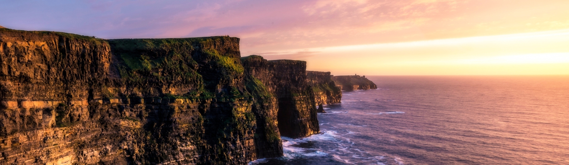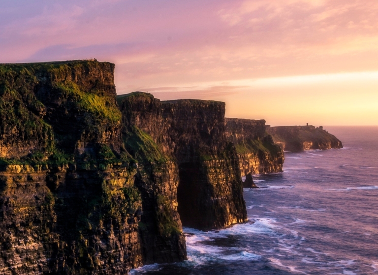 Rising slowly from Doolin village, the Cliffs of Moher run along the coast of Clare for almost 14 kilometres, or 8 miles and is dotted with the most charming towns and villages along the way.